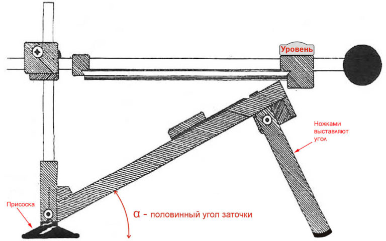- déterminer l'angle d'affûtage (son nombre sera égal à la moitié de l'angle sélectionné);
