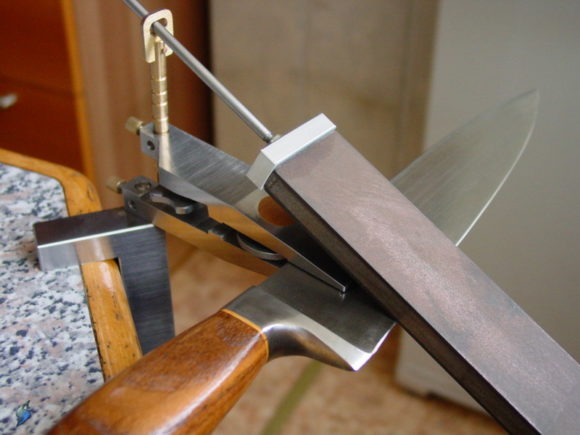 Puisque nous parlons de l'appareil le plus simple, l'angle d'affûtage pendant le fonctionnement peut varier légèrement. L'appareil est conçu pour fonctionner avec des couteaux de cuisine domestiques, donc changer l'angle dans ce cas n'est pas fatal. Si vous améliorez la conception avec deux ou trois supports, l'angle sera presque parfait.