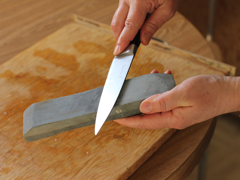- Après chaque mouvement, essayez de garder la lame à la surface de la pierre. Ne le laissez pas tomber pour ne pas émousser le couteau et ne pas l'endommager latéralement;