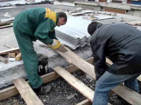 - les bords de l'ancien matériau de toiture ne sont pas pliés, puis serrés à la surface avec du mastic graissé;