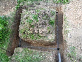 Si le sol est humide ou tourbé et que les eaux souterraines sont suffisamment proches de la surface et qu'il n'y a aucun moyen de boucher l'électrode au sol d'un demi-mètre, elle doit être constituée de coins métalliques qui sont immergés horizontalement dans le sol à une profondeur de 80 cm.