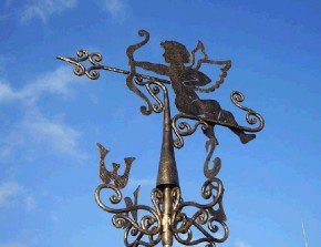 Girouette - un instrument météorologique historiquement ancré qui aide à déterminer la direction et la vitesse du vent. Cela fonctionne avec un contrepoids. Sur les toits des bâtiments, ces appareils sont installés depuis environ 1000 ans. Aujourd'hui, une girouette est souvent utilisée comme finition décorative lors de la décoration d'un toit. Il peut avoir différentes dimensions et apparences.
