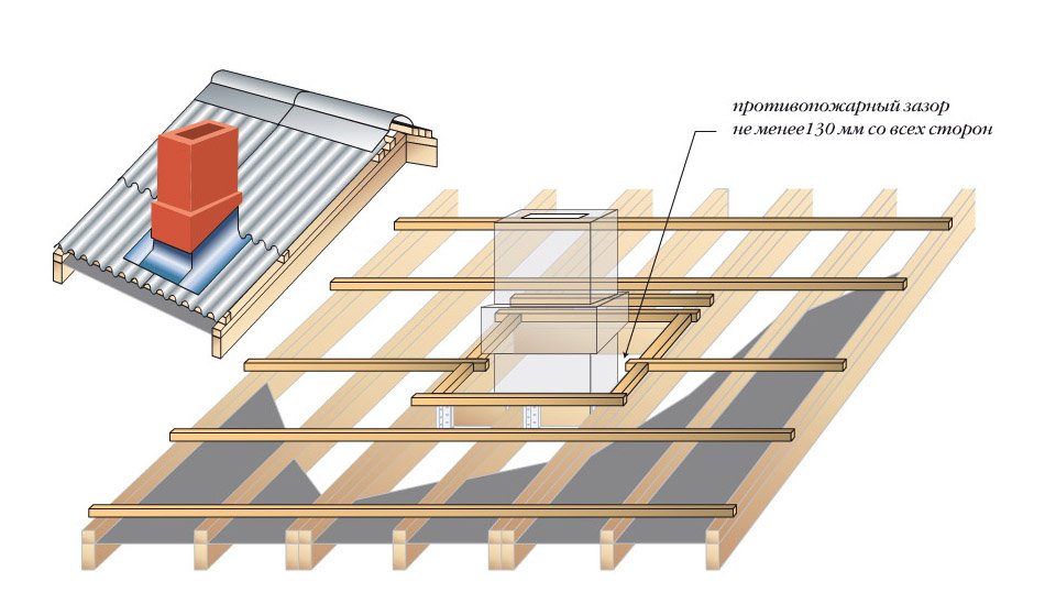 - Autour de la cheminée, remplissez la caisse autour du périmètre à une distance de 130–140 mm.