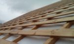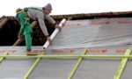 Le contre-treillis est rembourré une fois la fixation de l'étanchéité sur les chevrons de toit terminée.