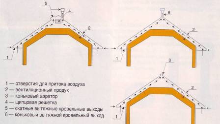 Il y a une mise en garde dans le grenier - la nécessité d'un dégagement de ventilation. Il est préférable d'en faire deux: un - directement au-dessus de l'isolation, le second - immédiatement sous la toiture. Avec l'aide du premier, la vapeur formée va sortir, qui a pénétré d'une manière ou d'une autre dans la couche d'isolation, et grâce à une autre, l'humidité accumulée sous les matériaux de toiture s'évapore. L'air doit provenir de la base du toit et passer par le toit dans la zone de la crête.
