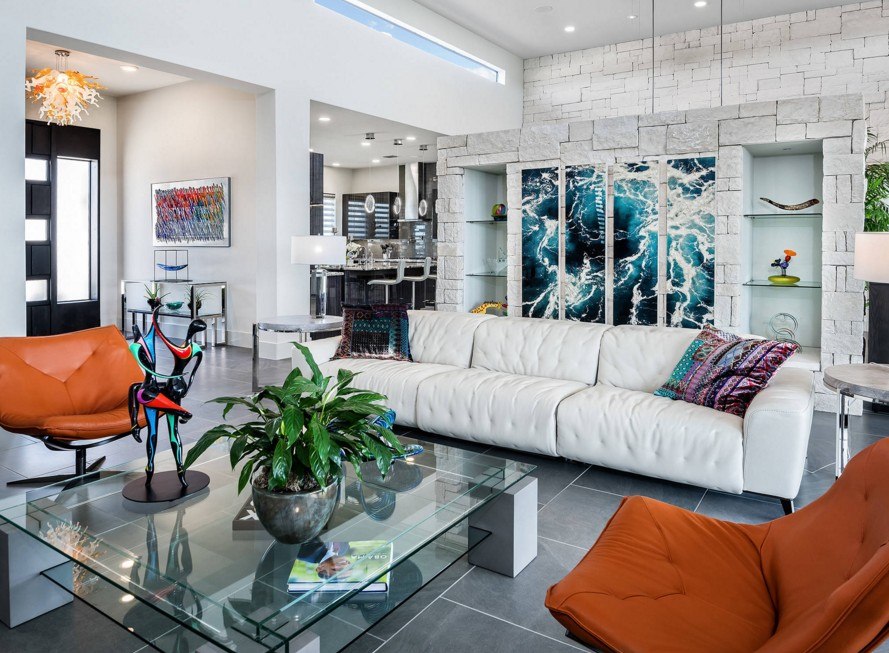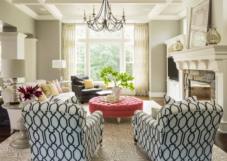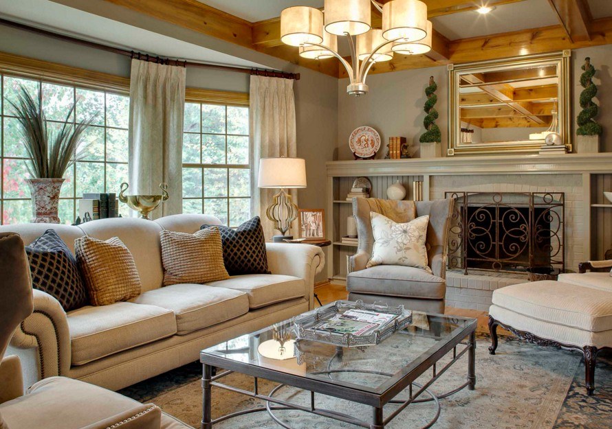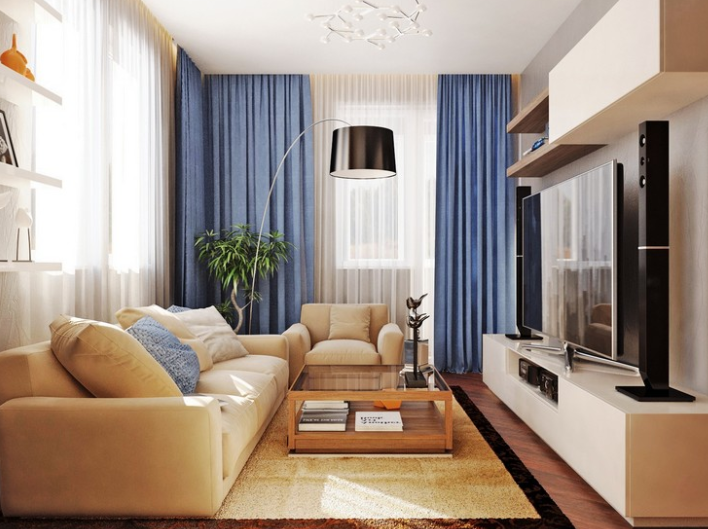 S'il y a un besoin d'augmenter visuellement le volume de la pièce, alors ce sera dans la puissance des tons clairs et chauds. Une sorte d'illusion d'optique. Le schéma de couleurs principal doit être discret, afin que vous puissiez vous concentrer sur un autre élément de l'intérieur. Malheureusement, les ensembles de canapés et fauteuils généralement acceptés ont de plus en plus souvent l'air si banal et monotone que si les propriétaires pouvaient les trouver de forme ou de rembourrage différents - ce serait beaucoup plus intéressant et animerait sans aucun doute l'apparence du salon.