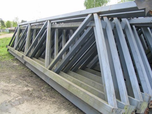 L'option de construction la plus courante pour une telle fondation est les fermes de treillis en bois. Pour la production de telles structures, on utilise du bois rond, des planches ou du bois. Les éléments en bois séparés sont généralement reliés par des méthodes de coupe ou en utilisant divers ancrages (boulons, clous, clés à dents annulaires).