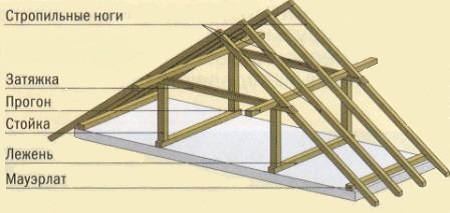 Pour la construction du toit à pignon d'un chalet, envisagez l'option d'une ferme avec des chevrons suspendus.