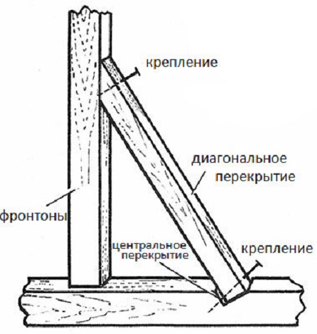Les plafonds diagonaux supplémentaires sont appelés accolades, à l'aide desquels le système de chevrons du toit à pignon est renforcé et les caractéristiques de résistance au vent avec des pignons sont augmentées. La partie supérieure des accolades repose sur les frontons et la partie inférieure - sur le plafond central.