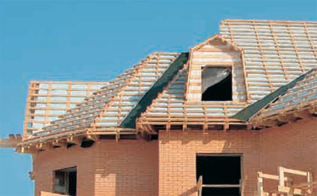 - structure de toit porteuse (poutres longitudinales, chevrons);