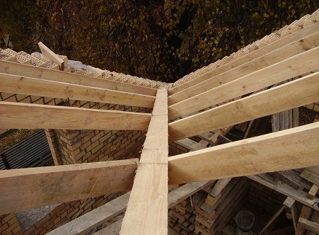 Après l'achèvement de la construction, ils procèdent à la conception du toit. La configuration du toit à plusieurs pentes est assez difficile à installer. Ici, les joints des pentes qui forment les vallées doivent être clairement élaborés et des barres supplémentaires pour le renforcement doivent être installées à ces endroits. Pour que la crête du toit soit positionnée à l'angle requis, la pente de l'angle de la vallée est modifiée. Cette technologie vous permet de construire un toit de différentes formes et tailles.