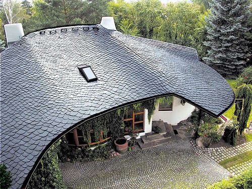 Si le toit en ardoise a des formes non standard, ce n'est pas du tout effrayant, car l'ardoise peut être posée sur des toits de toutes formes et tailles. En même temps, des tuiles de différentes tailles peuvent être utilisées pour donner à la maison les caractéristiques d'un style individuel.