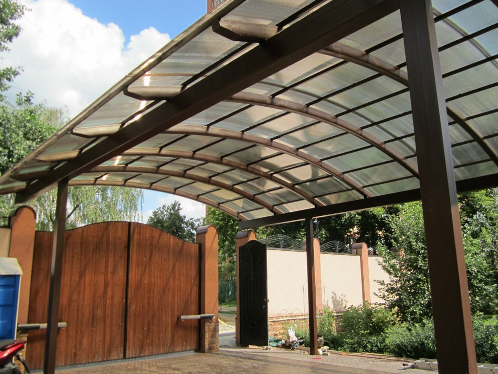 Entre les mains d'un designer expérimenté, ce matériau flexible et polyvalent peut briller de «couleurs spéciales». Par exemple, vous pouvez créer un gazebo original avec un toit en forme de dôme pour des rassemblements chaleureux et conviviaux. Un toit en polycarbonate pour un gazebo ou un simple abri d'auto vous protégera bien de la pluie et de la neige, créant l'illusion du ciel ouvert et de l'espace. N'est-ce pas génial?