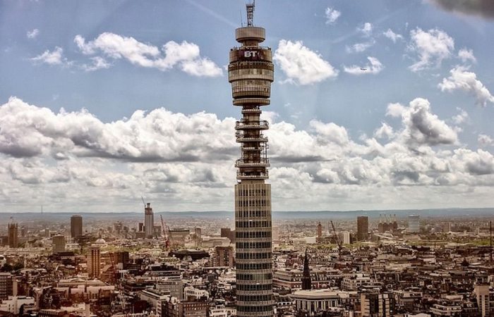 La hauteur totale de la tour de télévision de Londres British Telecom est de 177 m, 12 m supplémentaires étant ajoutés par l'antenne située sur le toit. Au sommet du bâtiment, il y a un restaurant tournant et une terrasse d'observation. Dans les années 70, il y a eu une attaque terroriste dans la tour, après quoi le restaurant et le lieu ont été fermés pour les visites publiques. Aujourd'hui, des événements culturels fermés ont lieu ici de temps en temps.