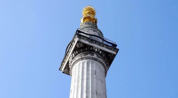 Dans les années 70 du XXe siècle, une stèle commémorative Monument a été construite à Londres en mémoire du grand incendie de Londres, qui a détruit la majeure partie de la métropole. Au sommet de la stella à une altitude de 62 m, il y a une terrasse d'observation avec une vue magnifique sur Londres. Un escalier de 311 marches y mène. Au pied de l'escalier, un moniteur est installé, qui diffuse les paysages de la ville depuis les caméras du pont d'observation.