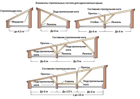 La construction d'un toit de type unique est la suivante: