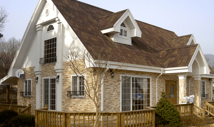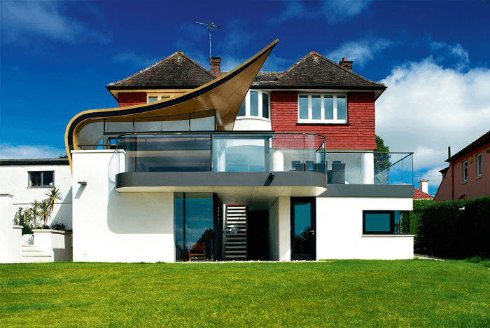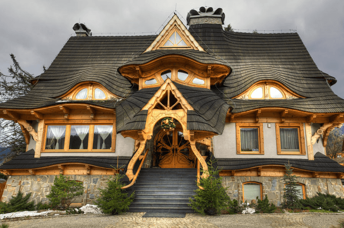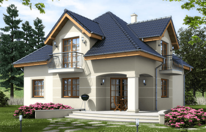 De nombreuses baies vitrées, tourelles, lignes fluides, lucarnes "pondèrent" considérablement le coût de construction. Tous ces éléments, bien sûr, sont beaux, mais nécessitent des compétences particulières de la part de l'artiste, et sont donc coûteux.