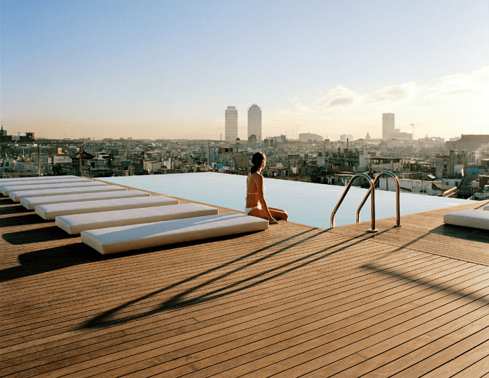 Le Sky Bar sur le toit du Grand Central Hotel (Barcelone, Espagne) donne sur le quartier de la Bourne.