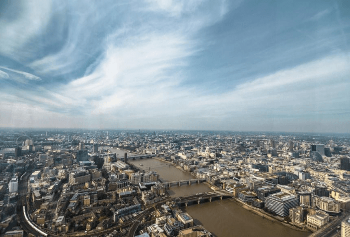 Sushisamba Bar dans le gratte-ciel de la tour Heron (Londres, Royaume-Uni). La vue depuis la terrasse de Sushisamba est si captivante qu'il devient très difficile de se concentrer sur la nourriture et les boissons.