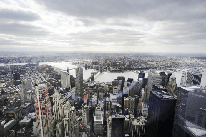 Observatoire de la Freedom Tower du World Trade Center (New York, États-Unis). Le pont d'observation occupe immédiatement trois étages d'un gratte-ciel (de 100 à 102).