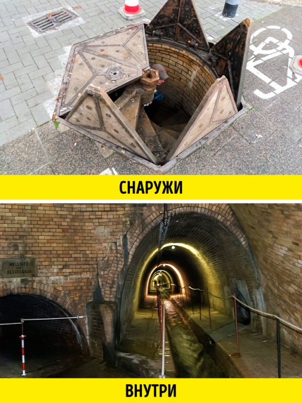 Une trappe inhabituelle, rappelant un vaisseau spatial dans sa conception, sert à cacher derrière elle l'entrée du donjon du canal de Salzbach. Aujourd'hui, il y a des visites guidées pour tout le monde et aucun égout ne sent même.
