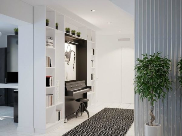 Maxim Dureev a pu atteindre l'aisance. Même le lit à baldaquin s'est avéré tout simplement magnifique, et l'armoire est décorée dans le style de l'armoire, avec toute la sévérité. Dans une petite niche, le designer a pu installer un piano et des bibliothèques, cela s'est avéré très élégant.