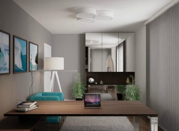 L'armoire est de couleur turquoise. En y entrant, vous pouvez immédiatement comprendre ce que le propriétaire de la maison aime, car il y a tout pour le surf. Presque la majorité des murs sont blancs.