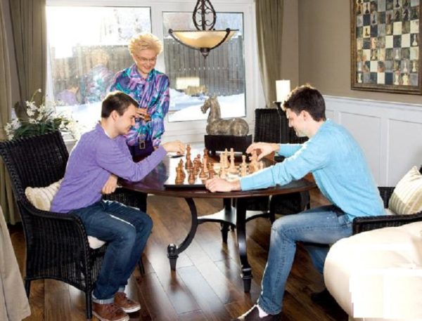 Une fois dans cette salle, vous comprenez qu'ici tout est fait avec goût et d'une manière spéciale d'une manière exquise. L'intérieur est élégant. Dans le salon, il y a une cheminée, jouant le rôle non seulement d'un élément qui complète l'intérieur. Les Malyshev l'utilisent pour le rendre chaud et confortable lors des froides soirées d'hiver. Le mobilier rembourré du salon est beige doré.