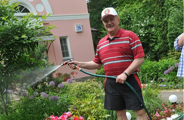 Là, Gennady Andreyevich prend tout le travail autour de la maison et sur le site pour lui-même, même s'il déneige la neige sur le territoire autour de la maison avec une pelle, selon des témoins oculaires, et en été, il brise d'énormes parterres de fleurs.