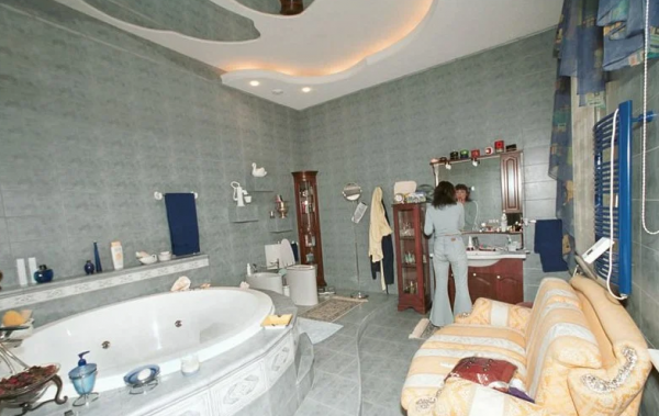 L'hôtesse hospitalière a montré aux journalistes sa maison. Au rez-de-chaussée d'un immeuble à plusieurs étages, il y a plusieurs pièces. Une cuisine confortable, décorée avec goût et carrelage avec du papier peint avec un petit motif. Toujours au rez-de-chaussée il y a un petit bureau pour le travail et un salon.