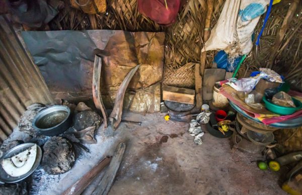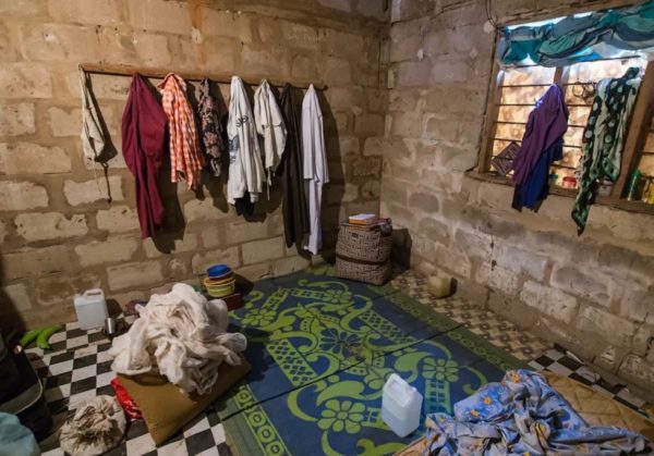 Une pièce où il n'y a même pas de lit. Les murs nus et les vêtements suspendus partout ne font qu'intensifier l'atmosphère.