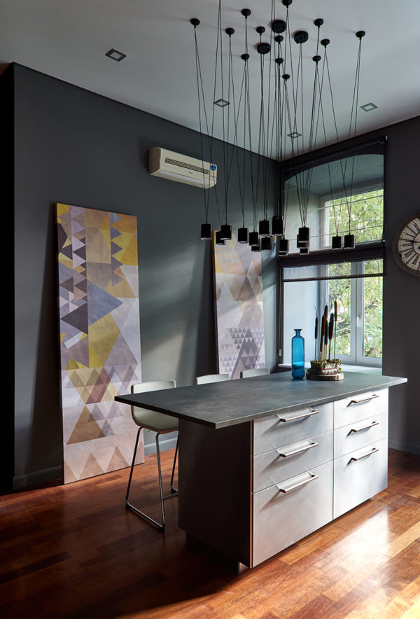 Selon Dmitry, il était fatigué de la rénovation des années 90 et veut enfin se débarrasser des lourds plafonds suspendus et des lustres élaborés.