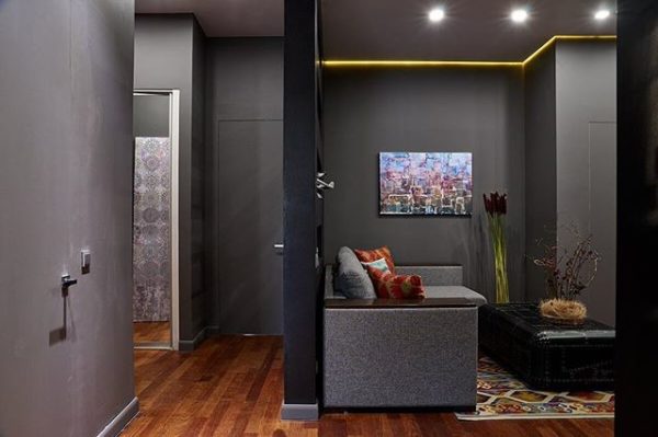 Grâce aux efforts du programme Ideal Repair dans l'appartement où vivent Dmitry et son fils, les murs ont été repeints dans des tons de gris graphite. En plus de la peinture, du plâtre imitant le béton a également été utilisé comme finition.