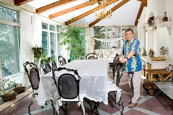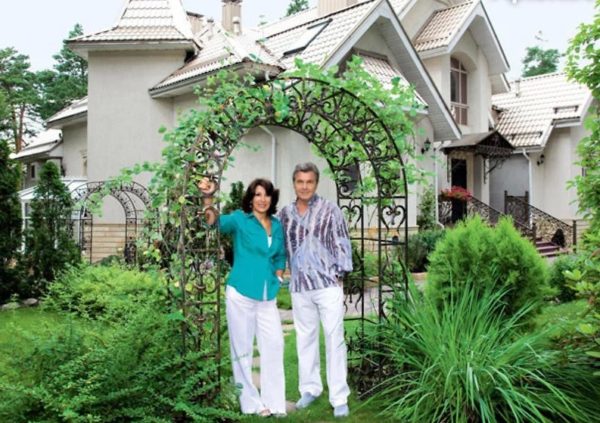 Autour de la maison il y a un jardin confortable, qui est décoré d'arches ouvragées à la main.En été, vous pouvez admirer comment le lierre les entoure naturellement.En plus des plantes, la femme du chanteur cultive des légumes dans le jardin, de sorte que les invités sont toujours accueillis avec des concombres cultivés par les propres mains d'Irina.