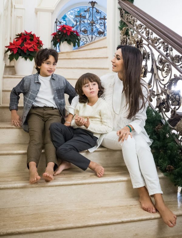 Un bel escalier avec de larges marches et des traverses en laiton mène au deuxième étage. À en juger par le fait que Zara avec des enfants pose souvent assise sur les marches - c'est son endroit préféré dans la maison.