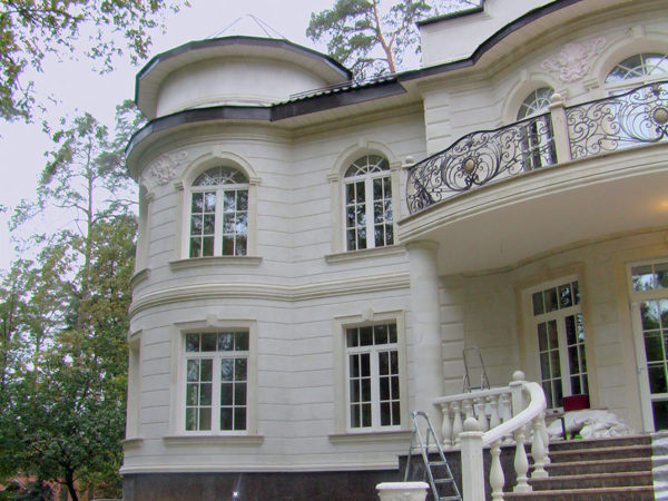 À l'extérieur, vous pouvez voir des moulures en stuc avec le motif et les initiales du propriétaire du domaine. Le symbolisme avec lequel les murs de la maison sont décorés peut inclure les armoiries ancestrales des ancêtres de Matvienko.
