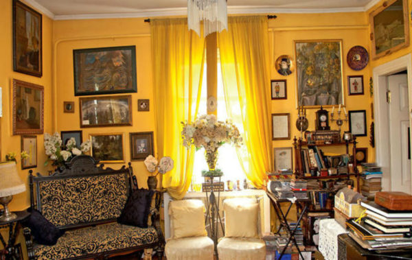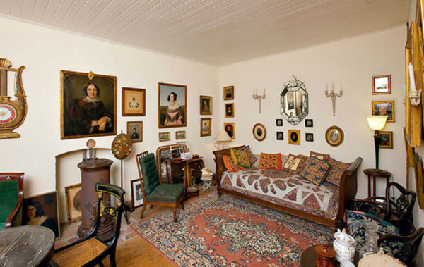 Le salon a une cheminée chic, une vieille commode. Cette salle abrite une collection unique de montres de l'époque napoléonienne, dont le boîtier est en bronze doré. L'horloge donne au salon un charme particulier.