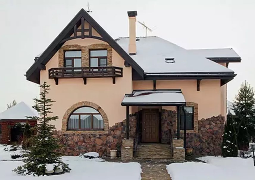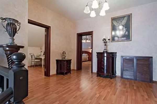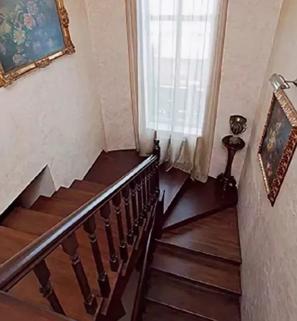 On sait que la maison a une superficie de 200 mètres carrés. Il a deux étages. Le premier est occupé par la salle à manger, la cuisine et le salon, qui a une cheminée. Les sols de ces pièces sont chauffés. Au deuxième étage, il y a des chambres, une pépinière et une salle de bains luxueuse.