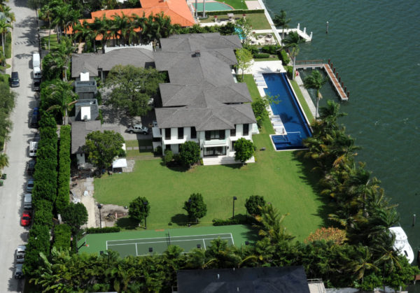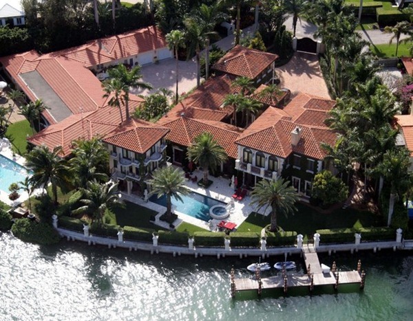 Les fenêtres de la maison donnent sur Biscayne Bay et Miami Beach. Le couple a conçu la maison dans un style futuriste. Le manoir est entouré d'une haute clôture. Il dispose de 5 chambres, salles de bains, salon, cave à vin, bar, salle de gym. Il a tout ce dont vous avez besoin pour un séjour confortable.