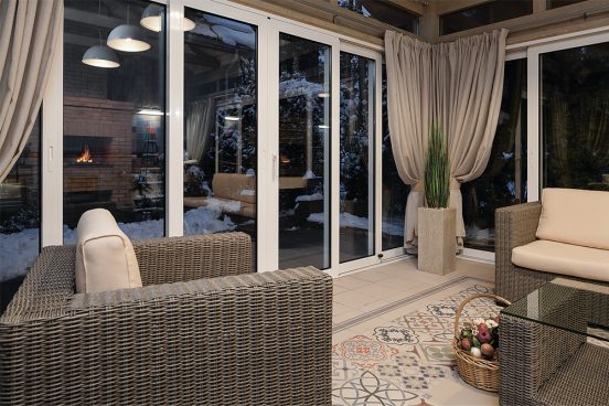 Le gazebo s'est avéré non seulement une extension, mais une mini-maison avec un sol chaud, des carreaux de sol de qualité anglaise. A un intérieur de style victorien, cheminée barbecue. Arrangé: plats en céramique faits à la main, meubles tissés en éco-rotin, copieurs artificiels.